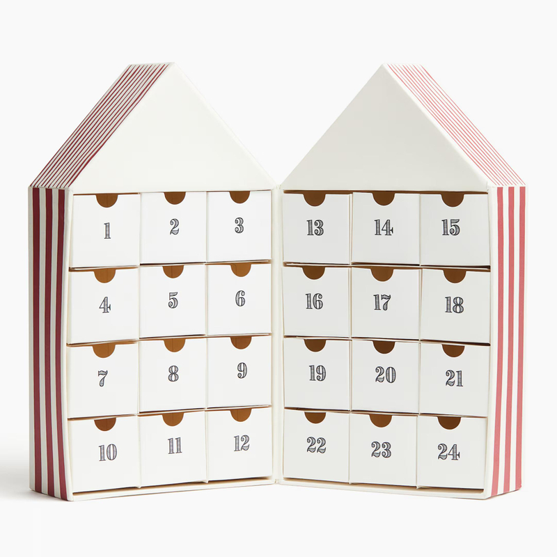 Advent calendar with 24 equally sized drawers for small gifts.